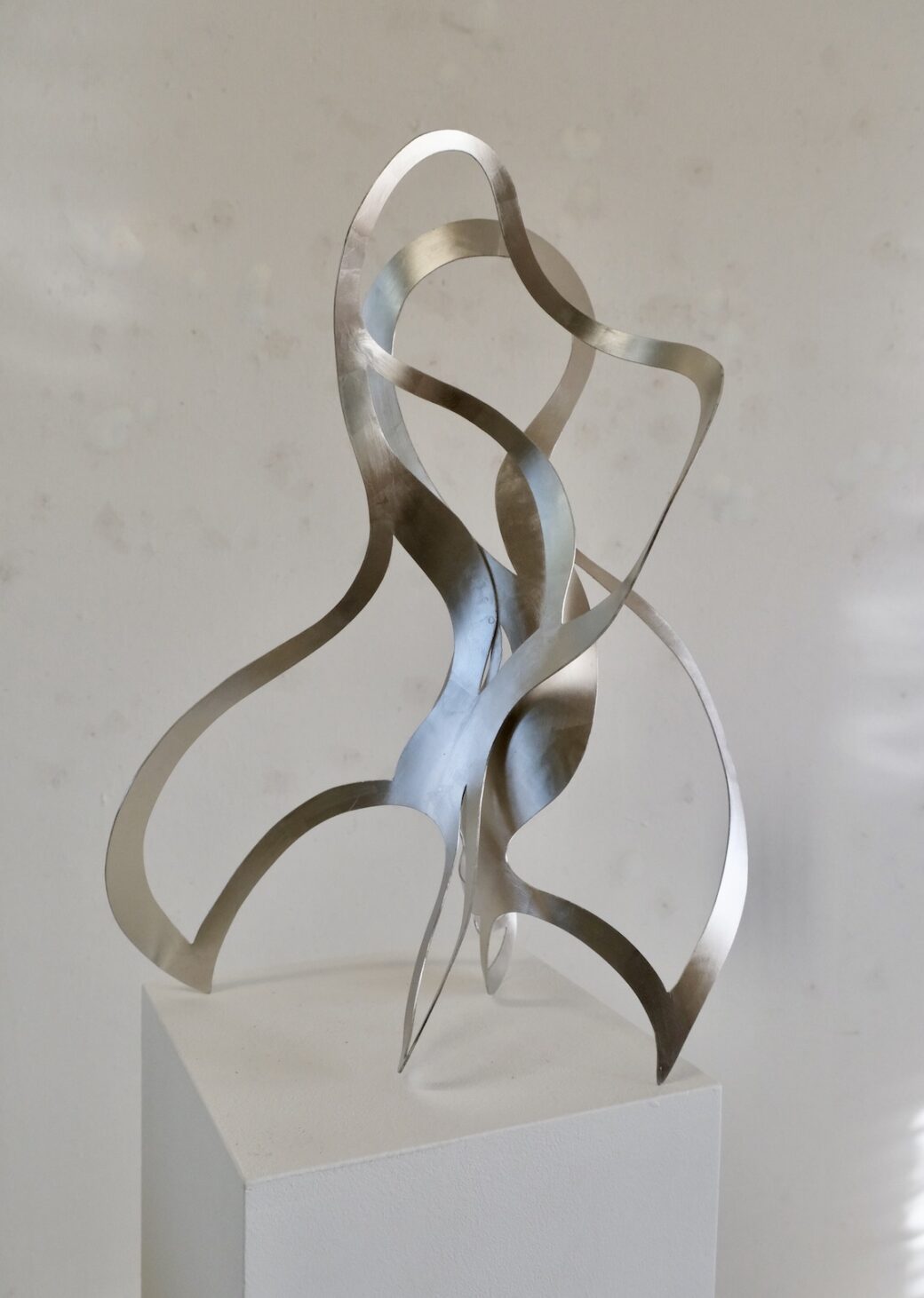 He carves thick sheets of watercolor paper or laser cuts metal sheets to create textured, layered works that give the illusion of three-dimensional brush strokes, splatters, and drips. Kocks’ forms seek to evoke and balance elements of four artistic genres: the linearity of drawing, the painterly brushstroke, the site-specific element of architecture, and the physicality of sculpture.