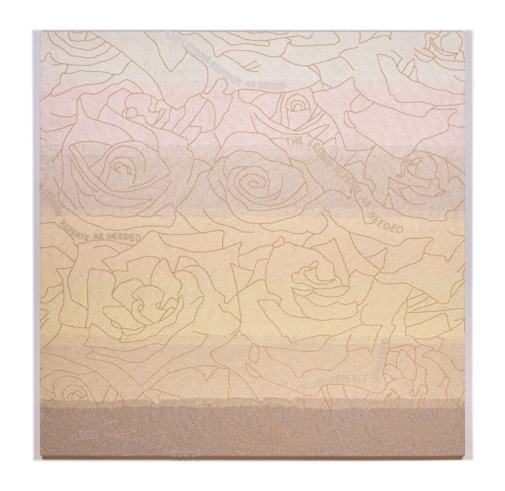 Stephanie Hirsch is a New York-based mixed media artist whose conceptual works explore themes of self-transformation and awareness. Stitching together words and imagery representing notions of strength, courage, humanity, and renewal. Working primarily with beads as her central medium, Hirsch transforms materials into intricate, labyrinthine compositions that serve as metaphors for consciousness, protection, and becoming.