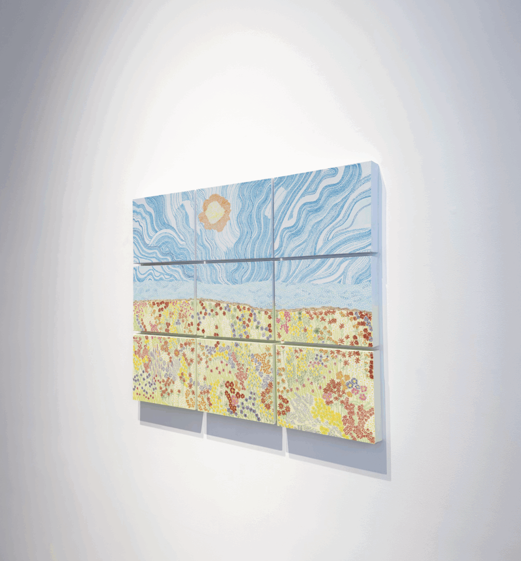 For Minhas, repetition is a mode of renewal, allowing each painting to unfold in its own time. What once lived in the hand as embroidery now moves through the body of the painting, each mark carrying memory, time, and touch. Like nature, Minhas finds that painting is always adjusting and evolving. There is no fixed center, only echoes and variation, like wind or waves tracing new paths across familiar ground. A Tapestry of Dreams reflects a pursuit of internal balance, and invites viewers to witness the natural world as something alive, vibrant, intertwined, and always in motion.